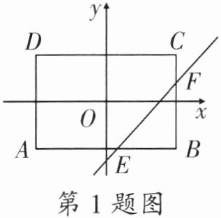 1. 如图,以矩形ABCD两对角线的交点O为原点建立平面直角坐标系,且x轴过BC中点,y轴过CD中点,$y= \frac {1}{2}x-2$与边AB,BC分别交于点E,F,若$AB= 10,BC= 3$,则$\triangle EBF$的面积是( )