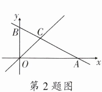 2. 如图,一次函数$y= -\frac {1}{2}x+3$的图象分别与x轴,y轴交于点A,点B,与正比例函数的图象$y= x$交于点C,则$\triangle BOC与\triangle AOC$的面积比为( )