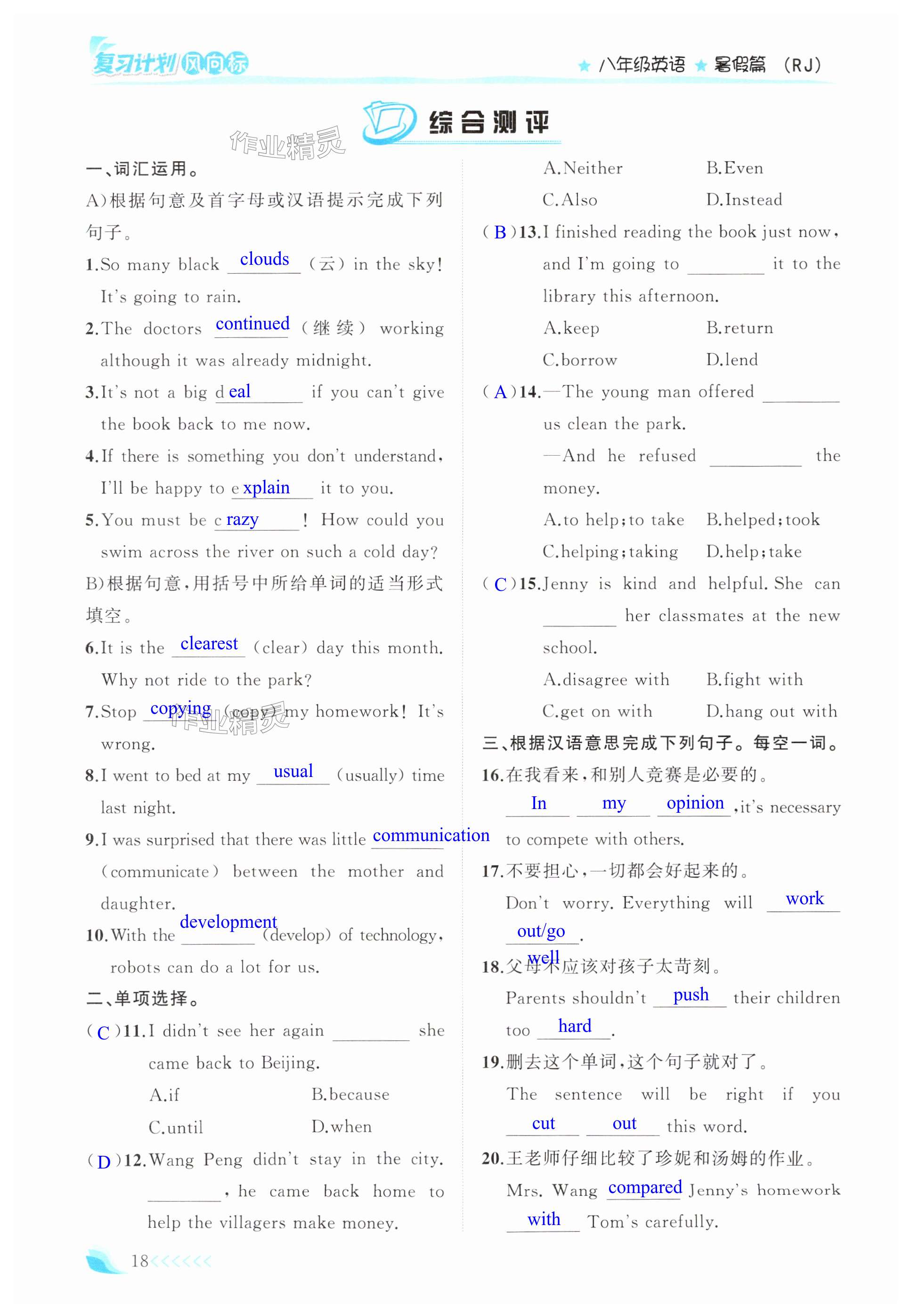 注:目前有些书本章节名称可能整理的还不是很完善,但都是按照顺序排列的,请同学们按照顺序仔细查找。练习册 2025年复习计划风向标暑八年级英语人教版 答案主要是用来给同学们做完题方便对答案用的,请勿直接抄袭。
