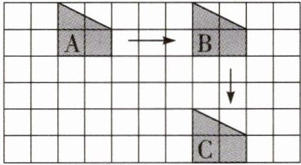 3. 图形A向( )平移( )格,得到图形B;图形B再向( )平移( )格,得到图形C。