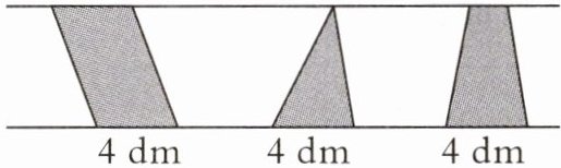 5. 一个梯形的上底是2.4dm,比下底短2.6dm,高是3dm。如果把它补成一个平行四边形,需补上面积为( )$dm^{2}$的三角形。
