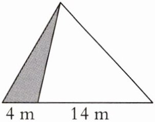 4. 如图是一块三角形的菜地,涂色的部分种西红柿,空白的部分种青椒。已知西红柿的种植面积是$24m^{2}$,那么青椒的种植面积是多少平方米?(9分)