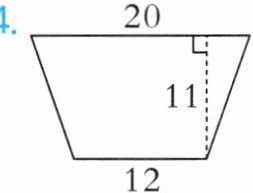 1. 26×34=884($\text{cm}^2$) 2. 3.4×2.5÷2=4.25($\text{cm}^2$) 3. 12×16÷2=96($\text{cm}^2$) 4. (12+20)×11÷2=176($\text{cm}^2$)