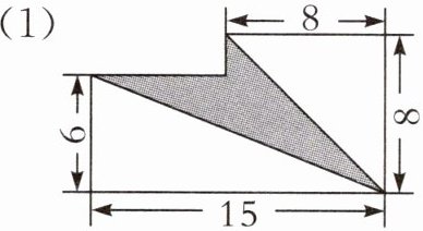 (1)(15-8)×6÷2+(8-6)×8÷2=29(cm²)