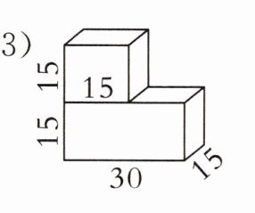 (3)表面积:$30×15×2 + 15×15×2 + (30×15 - 15×15)×2 + 15×15×4 = 3150(cm²)$