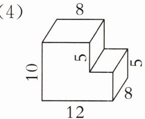 (4)表面积:$(12×8 + 12×10 + 8×10)×2 - 5×5×2 = 592(cm²)$