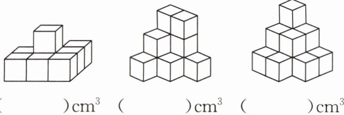 7. 下面三个图形都是由棱长1cm的小正方体拼成的,分别将这三个图形的体积填在对应的括号里。