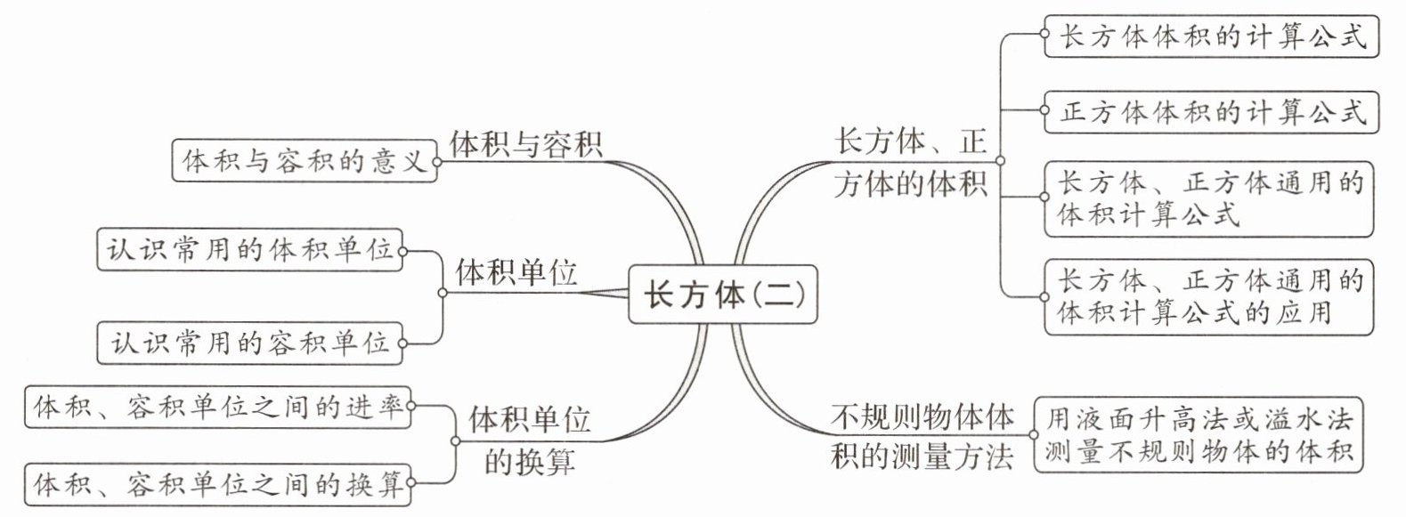 (1)体积单位:常见的体积单位有立方厘米、立方分米和( ),用字母表示分别为$cm^{3}$,$dm^{3}$和( )。