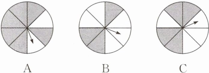 解析:本题考查了可能性的大小,哪种颜色区域面积越大,指针指向该区域的可能性就越大。