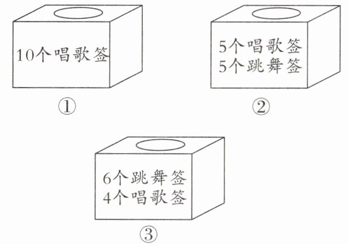 (1)从( )号和( )号箱子里既可能抽出唱歌签,也可能抽出跳舞签。