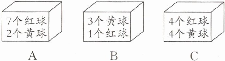解析:本题考查游戏公平性的判断,关键在于比较每个盒子中摸到不同颜色球的可能性是否相等。