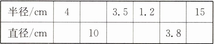 |半径/cm|4| |3.5|1.2| |15|