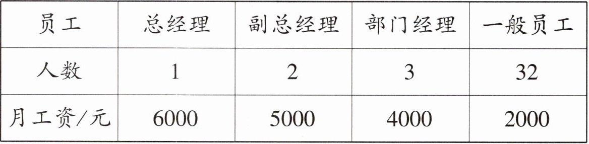 3. 某公司全体员工的工资情况如下表,最能代表这个公司员工工资的一般水平的数据是()。