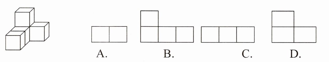 1. 如左图所示的立体图形,从上面看到的是()。