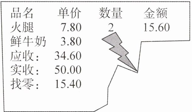 3. 下面是某超市的购物小票,不小心撕掉了一部分。请你帮助算一算,买了多少袋鲜牛奶?
