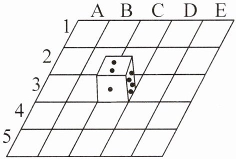 在五行五列的方格棋盘上沿骰子的某条棱翻动骰子,骰子在棋盘上只能向它所在格的左、右、前、后格翻动。开始时骰子在 3C 处,如图所示: