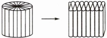 4. 如右图所示,把底面直径为8厘米的圆柱切成若干等份,拼成一个近似的长方体。这个长方体的表面积比原来增加了80平方厘米,那么圆柱的高是$(\;)$厘米,长方体的体积是$(\;)$立方厘米。
