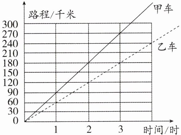 1. 从图中可以看出,甲车行驶的路程与行驶的时间成()比例关系。