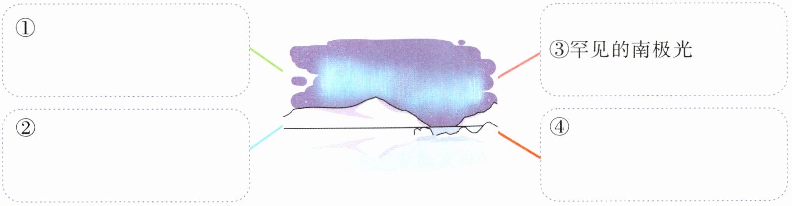 2. 短文围绕“______”一句从四个方面描写了南极风光。仔细阅读短文,结合提示,将下面的结构图补充完整。