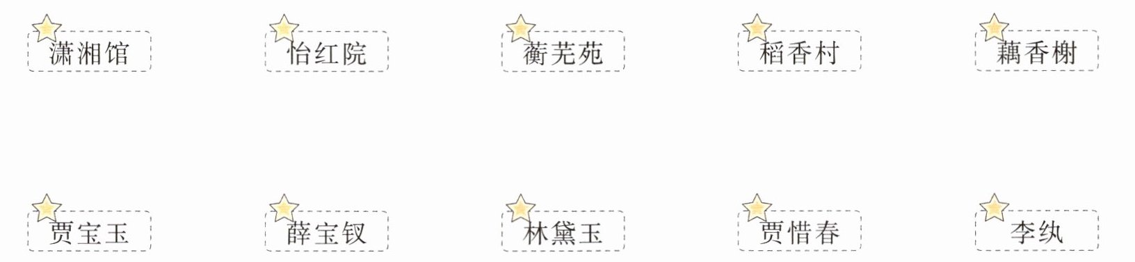 二 大观园中有许多建筑,请你为下面的建筑找到对应的主人。