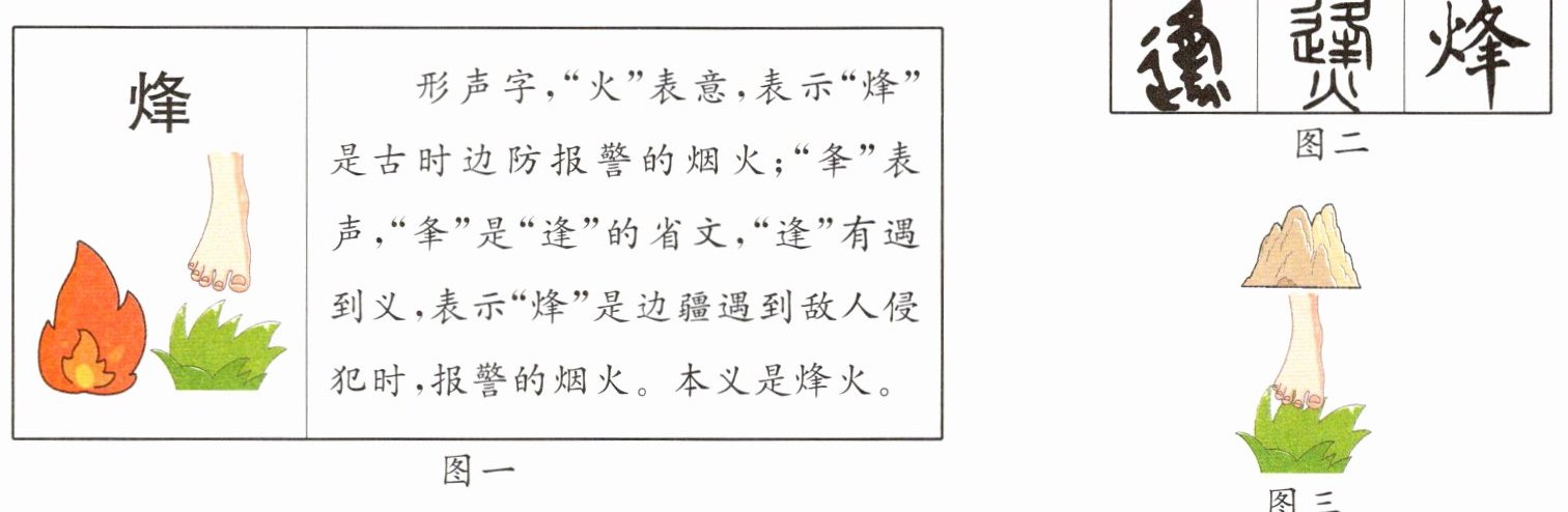 1.根据图一,我知道了“烽”是形声字,“______”表声,“______”表意,“烽”的篆书形体把