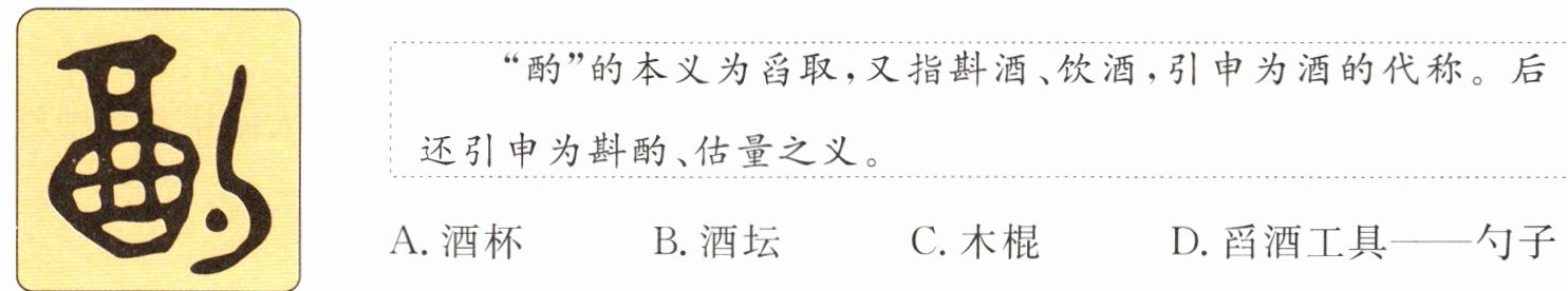 4.下面是古人最早创造的“酌”字。根据古字“酌”的字形特点,联系“酌”的本义,可以分析出这