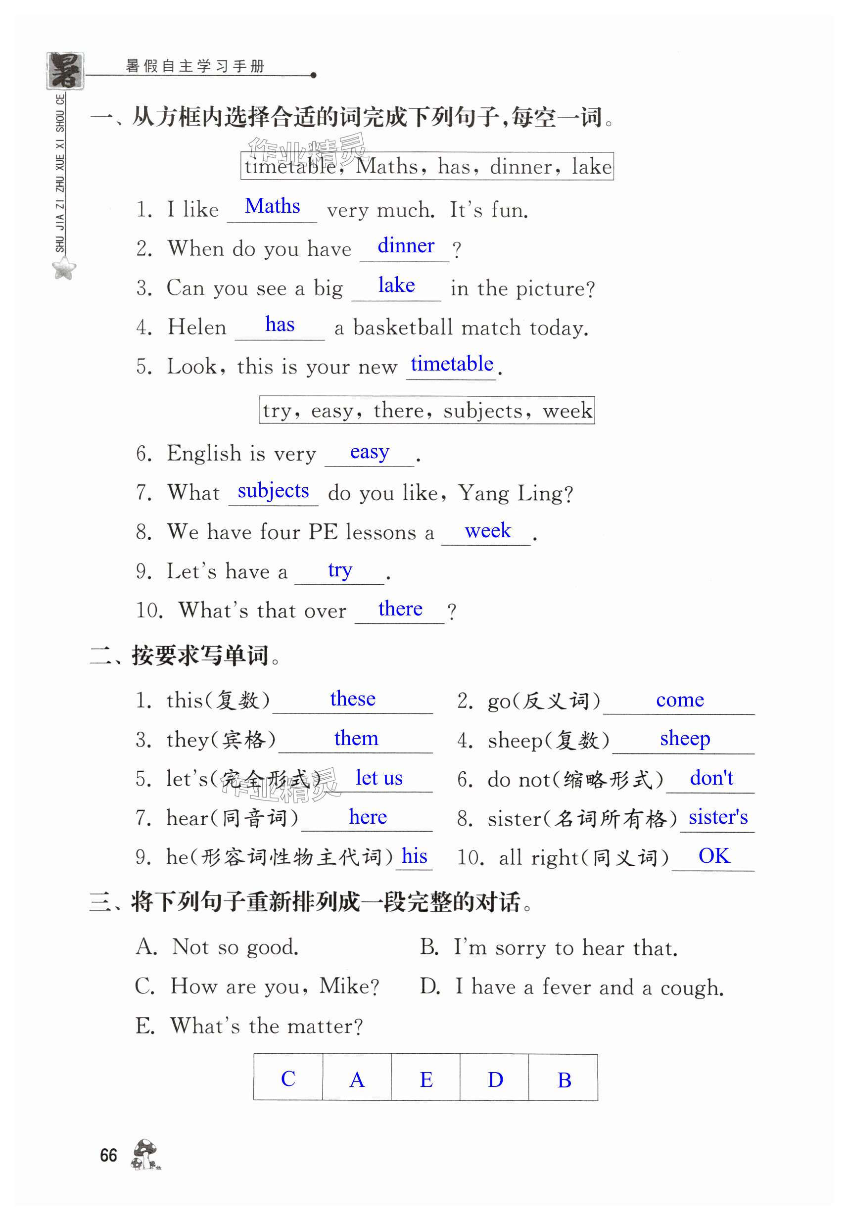 注:目前有些书本章节名称可能整理的还不是很完善,但都是按照顺序排列的,请同学们按照顺序仔细查找。练习册 2025年暑假自主学习手册四年级江苏人民出版社 答案主要是用来给同学们做完题方便对答案用的,请勿直接抄袭。
