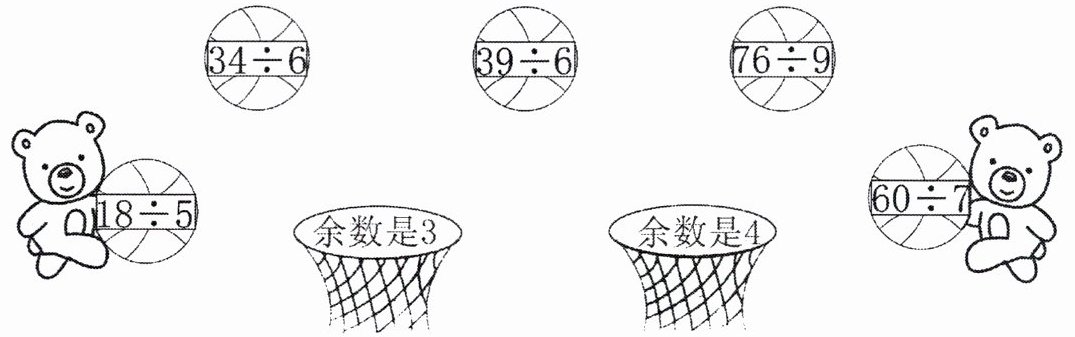 本题考查有余数的除法的计算及应用。分别计算每个式子,然后根据余数进行连线。