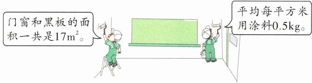 6 工人师傅们要粉刷五(1)班平顶教室的顶面和四面墙壁,已知教室的长是8m,宽是6.5m,高是3m。
