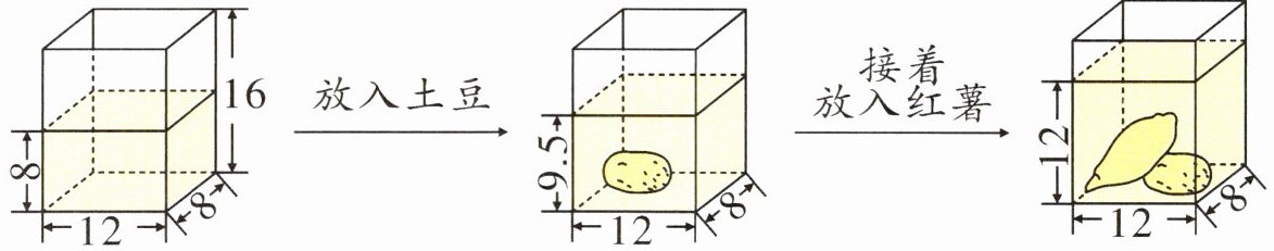 7 李强为了比较土豆和红薯的体积做了如下实验。(玻璃的厚度不计,图中单位:cm)