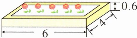 6 如下图,学校在空地上用砖和水泥砌了一个高0.6m的长方体花坛。从外面量长6m,宽4m;从里面量长5m,宽3m。(图中单位:m)
