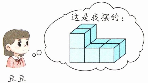 4 根据下面从不同的方向看到的图形,看看豆豆摆得对不对。如果不对,应怎样改正?