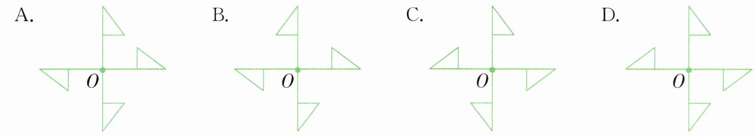 1 说一说下面的这些图形是以哪个点为中心旋转的。