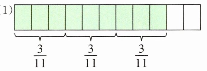 (1)$\frac{3}{11}+\frac{3}{11}+\frac{3}{11}=\frac{9}{11}$ $\frac{3}{11}× 3=\frac{9}{11}$