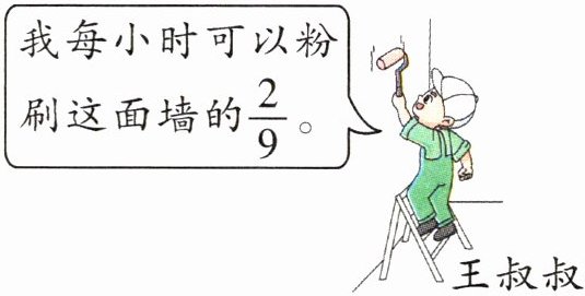 6 假期里,学校粉刷楼道墙壁。王叔叔$\frac {1}{3}$小时可以粉刷这面墙的几分之几?