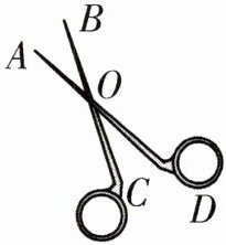 1. 如图,剪刀在使用的过程中,随着两个把手之间的夹角($\angle DOC$)逐渐变大,剪刀刀刃之间的夹角($\angle AOB$)也相应