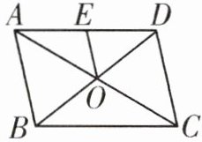 2. 如图, $□ ABCD$ 的对角线 $AC,BD$ 交于点 $O$, 点 $E$ 是 $AD$ 的中点, $△BCD$ 的周长为18, 求 $△DEO$ 的周长.