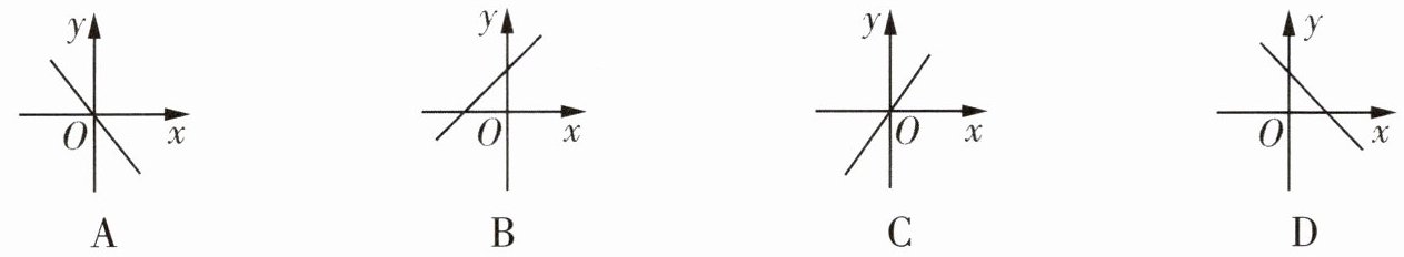 3. 已知正比例函数$y = kx(k\neq0)$,当$x= -1$时,$y= -2$,则它的图象大致是图中的(
