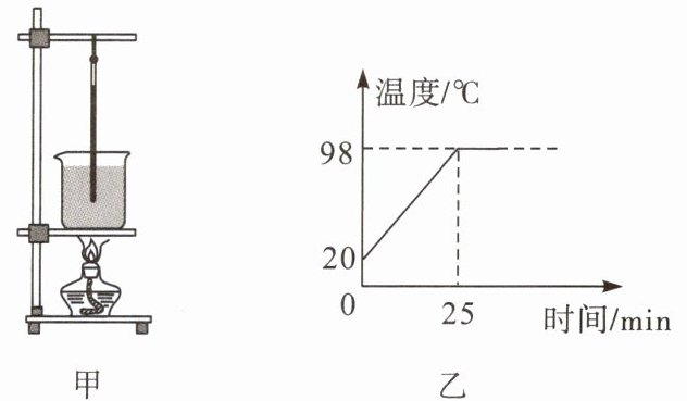 (1)从图乙中可以看到,水在温度达到98℃后,继续吸热但温度不再升高,说明水已经达到沸点,因此水的沸点是98℃。