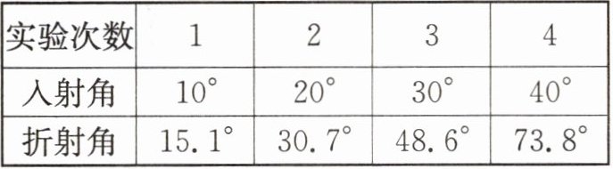 (2)做完第 4 次实验后,同学们又使一束光从乙介质中以 73.8°的入射角射入甲介质,测得折射角恰好为 40°,这说明在折射现象中,