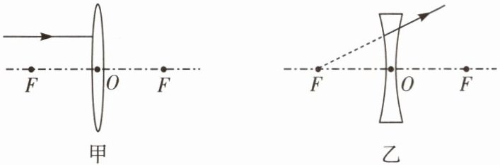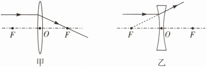 例1 (孝感中考)请在图甲中画出入射光线经凸透镜折射后的光线;在图乙中画出折射光线对应的入射光线。