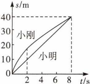 5.(六盘水中考)课外活动时,小明和小刚在操场上沿直线跑道跑步,如图所示是他们通过的路程随时间变化的图像,则下列说法正确的是(