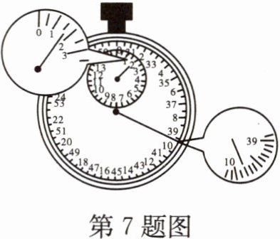 7. 为迎接中考体育技能测试,体育老师对全班同学进行了一次模拟考试。如图所示,秒表显示的是一位同学跑完400m所用的时间,则该同学跑完400m所用的时间为