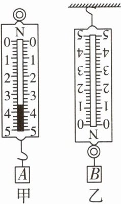 N;另一个同学在正确校零后,如图乙所示,误将弹簧测力计倒置,使物体B挂在了拉环上,这样测量出来的物体B受到的重力比真实值偏大
