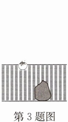 3.(济南中考)把一块石头和一个西红柿同时放入水中,它们静止时西红柿漂在水面上,而石头沉入了水底,如图所示。石头和西红柿在水中受到的浮力的大小相比较(