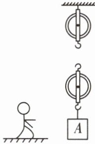 图略(绳子从动滑轮的挂钩开始绕,依次绕过定滑轮、动滑轮,最后绳子的自由端在人手中,滑轮组绳子的绕法为$n = 3$的情况)。