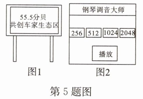 5. (随州中考)如图是生活中的两个情境,图1是居民小区噪声监测器,显示环境噪声为55.5分贝。图2是钢琴调音师正在用手机上的一个调音软件播放音叉256、512、1024、2048(Hz)的标准音来校准琴音。下列说法正确的是 (
