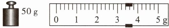 3. 某同学用天平和量杯测石块的密度。用调节好的天平测石块的质量,天平平衡时右盘砝码的质量、游码在标尺上的位置如图所示,再用量杯测出它的体积为$20cm^{3}$,则石块的密度是