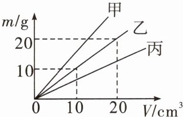 2. (自贡中考)甲、乙、丙三种物质的质量与体积的关系如图所示,$\rho_{甲}$、$\rho_{乙}$、$\rho_{丙}$、$\rho_{水}$分别代表甲、乙、丙和水的密度,下列说法正确的是($\rho_{水}= 1.0×10^{3}kg/m^{3}$) (