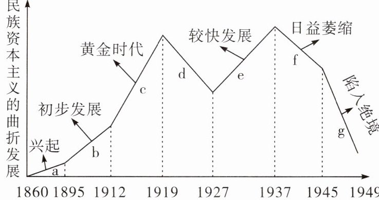 4.(西宁中考)近代中国民族工业发展历经曲折,如图中与c阶段发展状况直接相关的是(